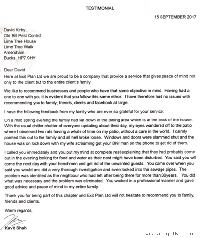 We would highly recommend Old Bill’s for anyone looking for a discrete and professional pest control service"