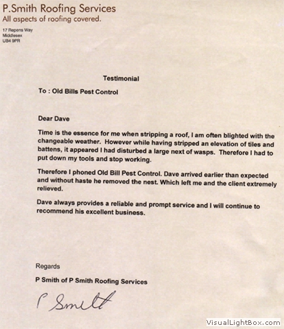My thanks to Old Bills Pest Control for such excellent customer service and, obviously, I cannot recommend them highly enough!